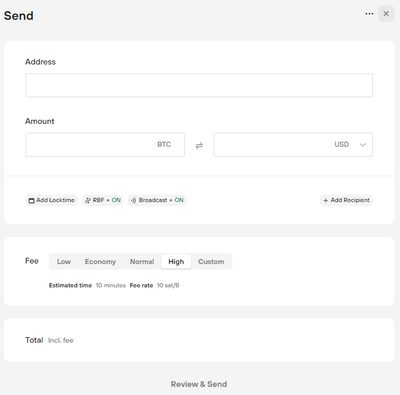 Finally, you should select the Fee, this will govern how fast the transaction will be processed. High fee transactions are prioritized by the blockchain and will arrive faster but comes at a cost.