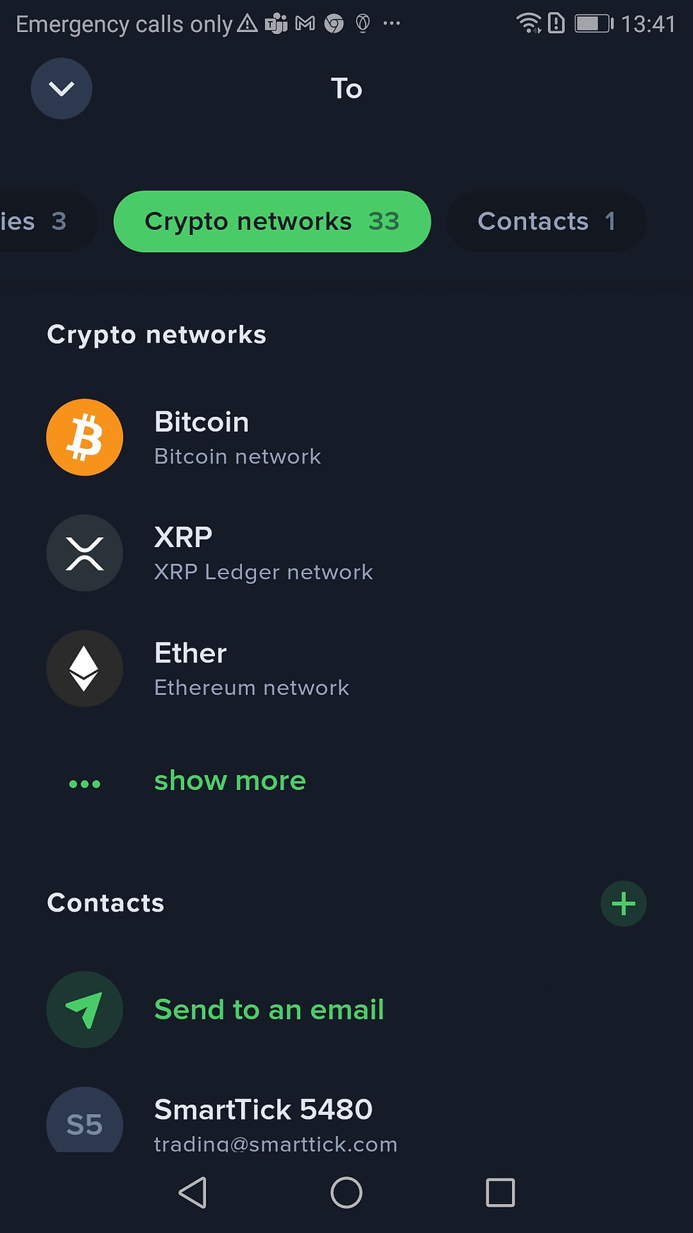 In the To window, select the Bitcoin network option. You may have to scroll around a little to find the list of Crypto Networks.