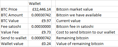 Next I will work out what the fee was to buy our £10 of bitcoin from Uphold, see how it compares to our ATM option.