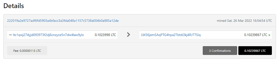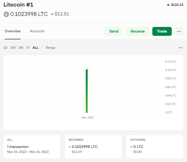 Our available funds show the litecoin wallet is now active with the amount of litecoin we sent.