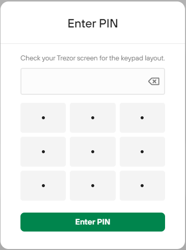 Enter the pin number using the 9 grid number range on the Trezor to select the boxes on the PC.